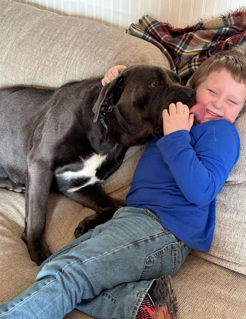 Blue is a lively and outgoing 100 lb girl who never meets a stranger. She’s full of energy, loves playing fetch, and can’t resist the excitement of a brand-new bone. Despite her size, she considers herself the ultimate lapdog and adores snuggling up for some quality cuddle time. Blue has a special fondness for children and thrives on their companionship.